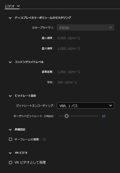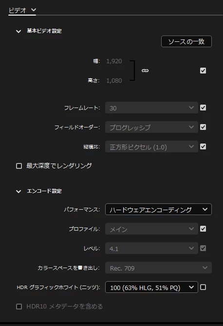 いろいろ試されてるとは思いますが、参考までに書き出し設定の画面を貼っておきます。