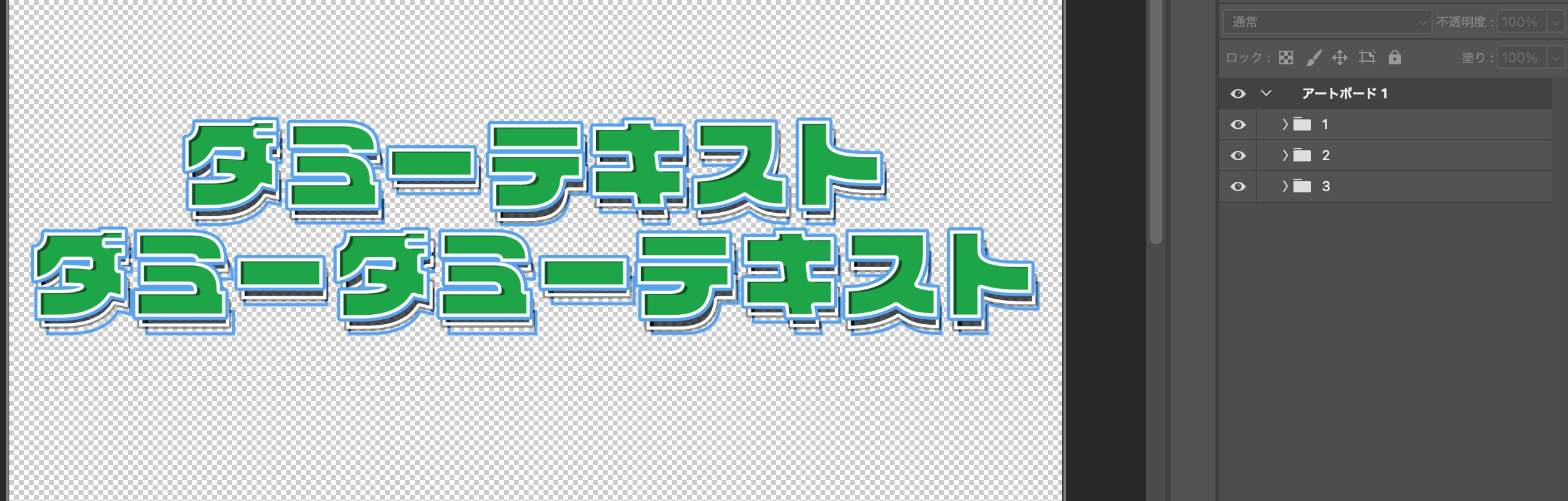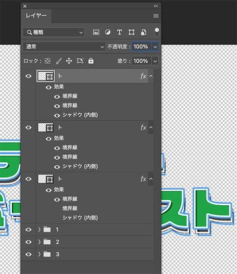 Photo Shopでテキストを1文字ずつ三層に重ねているのですが