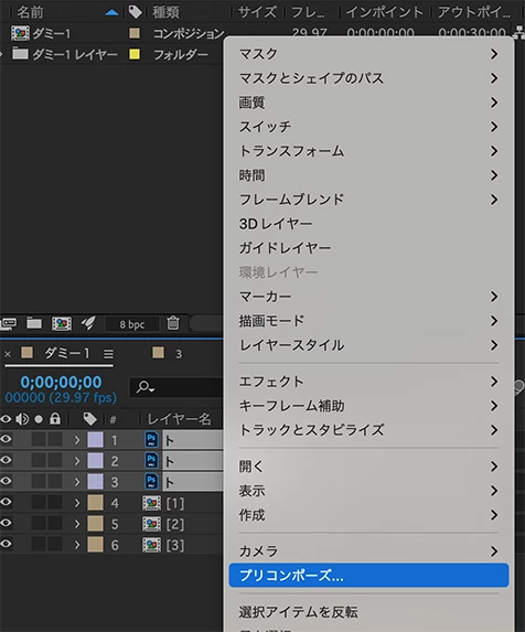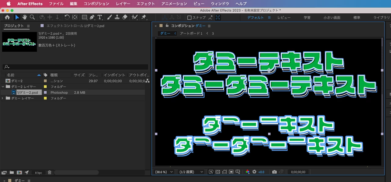 Photo Shopを読み込みしても正しくAfter Effectsに読み込まれない