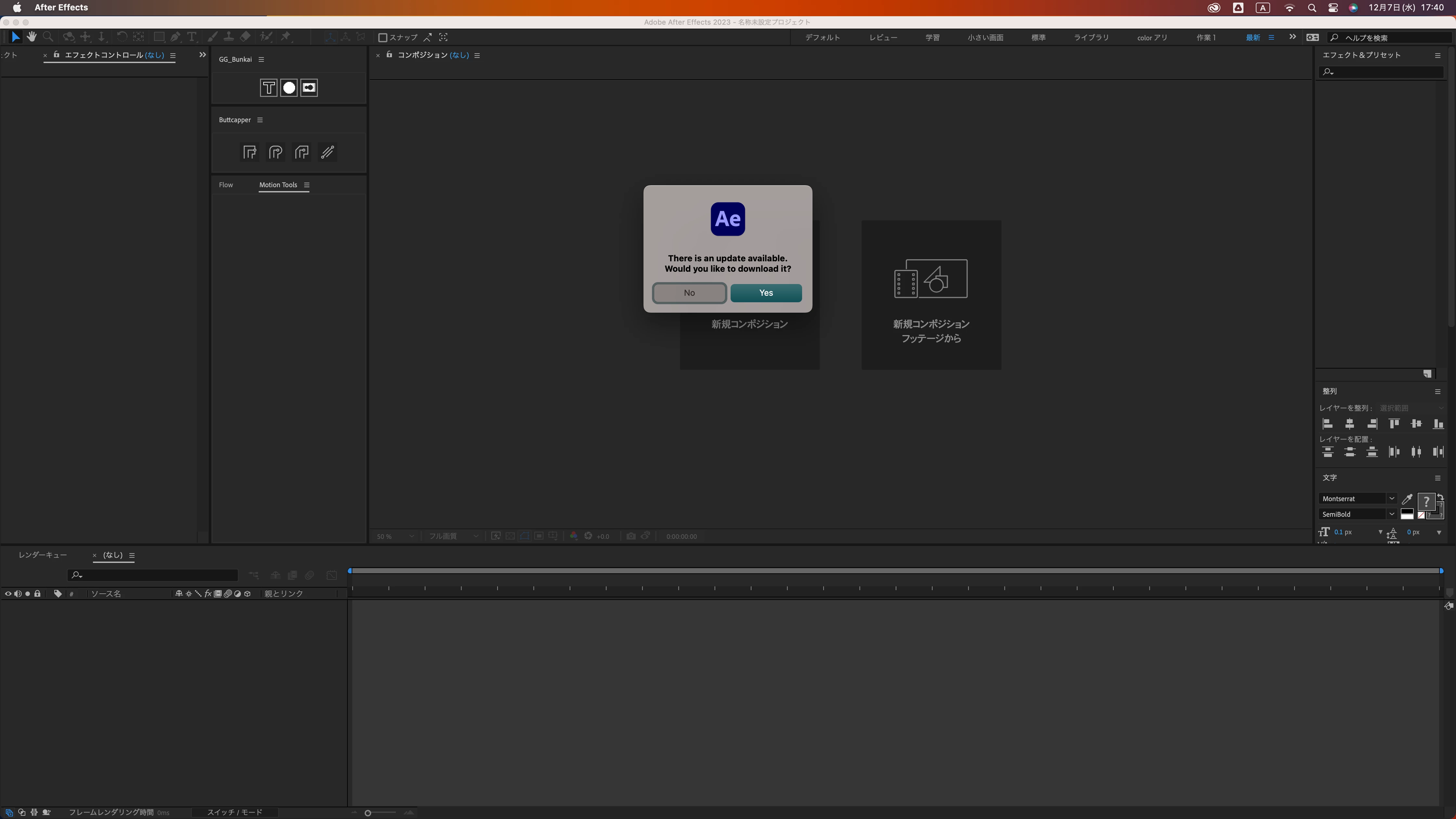 LloloboonParticipating FrequentlyForum|Forum|3 years agoDecember 7, 2022Questionthere is an updateから始まるお知らせ文が毎回表示されるForum|Forum|3 years agoDecember 7, 20221 reply358 viewsThere is anupdate available.Would you like to download it?というお知らせが常に表示されるようになってしまいました。yesをクリックするとどのファイルかきかれますが、ダウンロードすべきファイルは思いつきません。motion toolsなどいくつかスクリプトなどを導入していますが、そのようなスクリプトファイルをさしているのでしょうか?どなたか知っておられる方がいましたら教えていただきたいです。よろしくお願いいたします。macを使用しています。エラーまたは問題