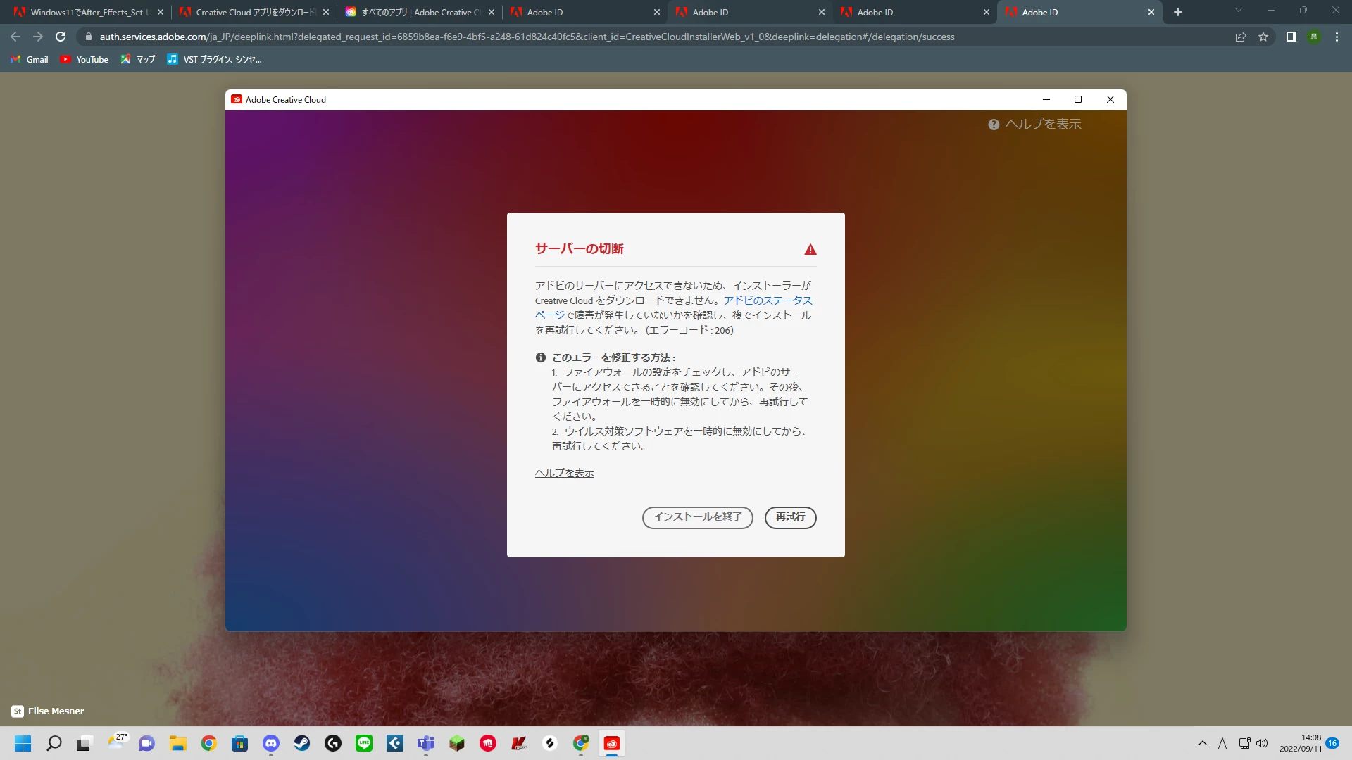Windows11でAfter_Effects_Set-Up起動しAfterEffectをインストールしようとしているのですがインストールできません
