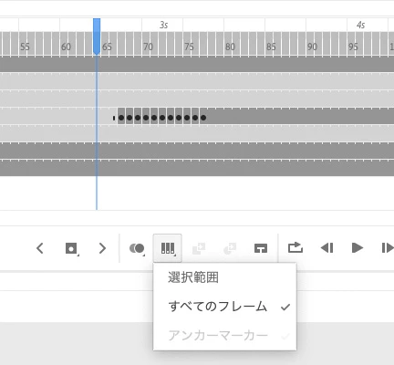 全フレームを選択しても、タイムラインバーのあるフレームしか変更されません。
