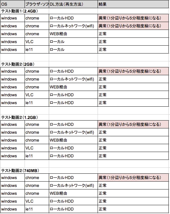 chromeのflashで動画再生すると一定時間映像が緑になる