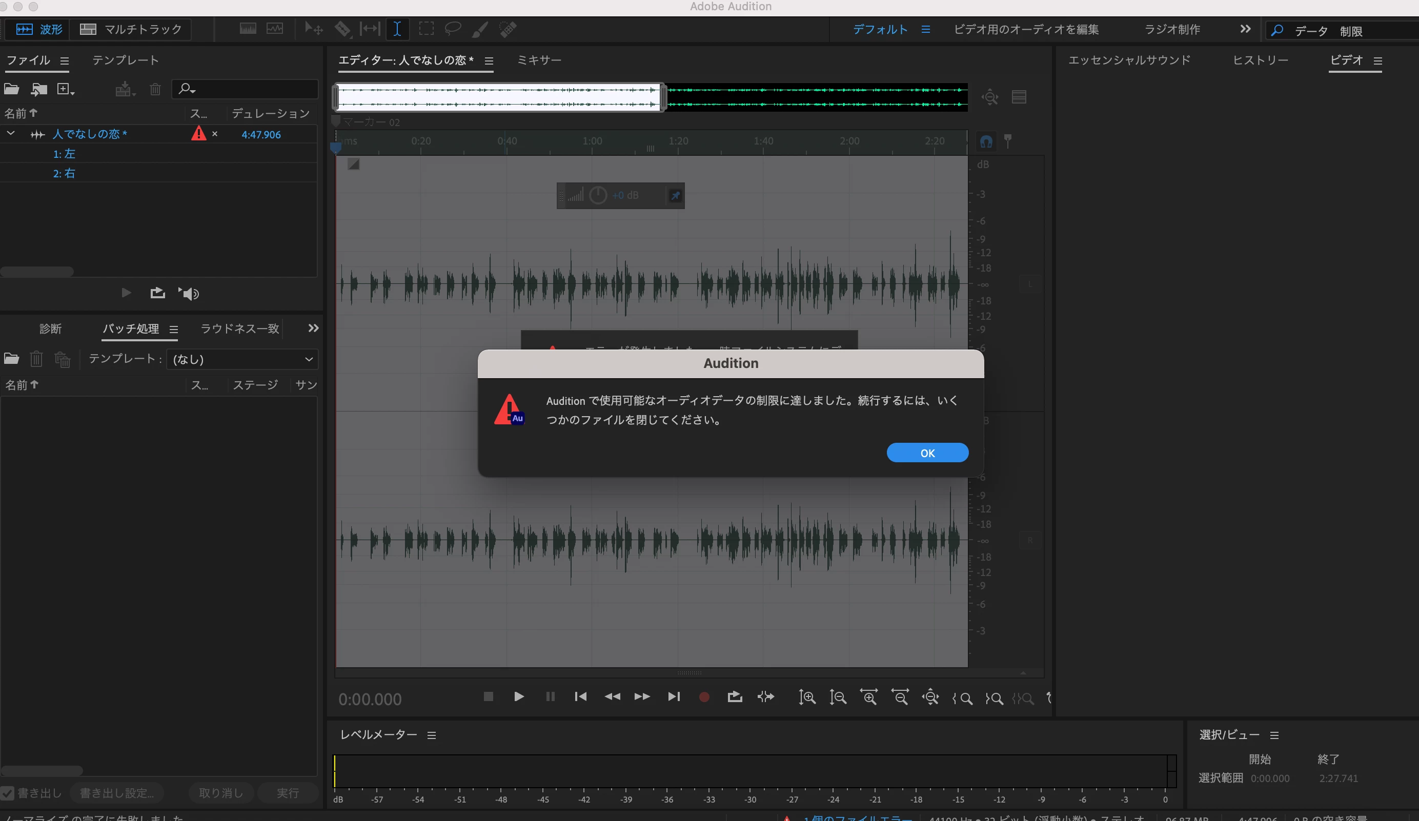 エラー:オーディオデータ制限に達しましたと出てしまいます…