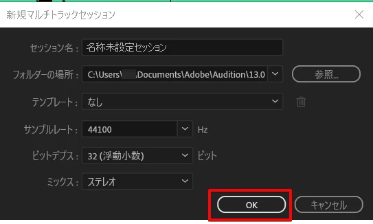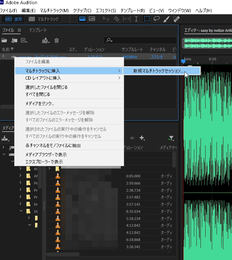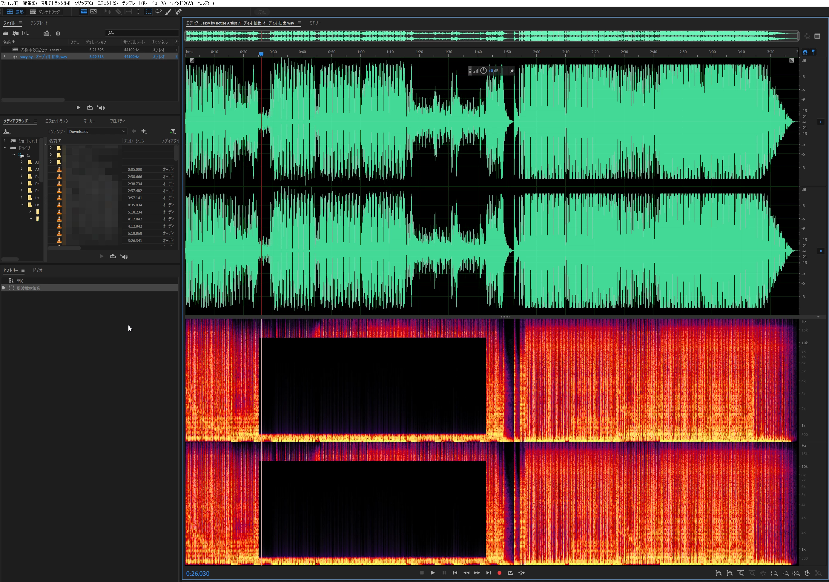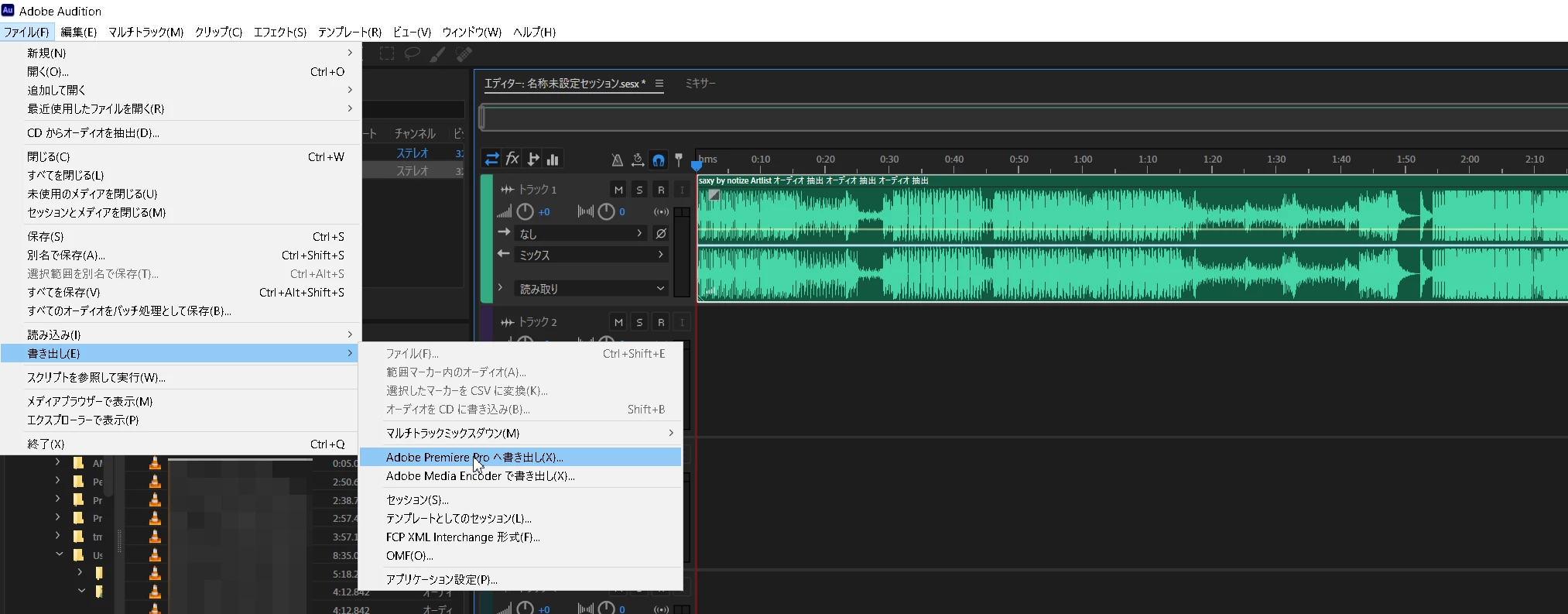 premire proにてハウリング音があるため、Auditionを立ち上げて
