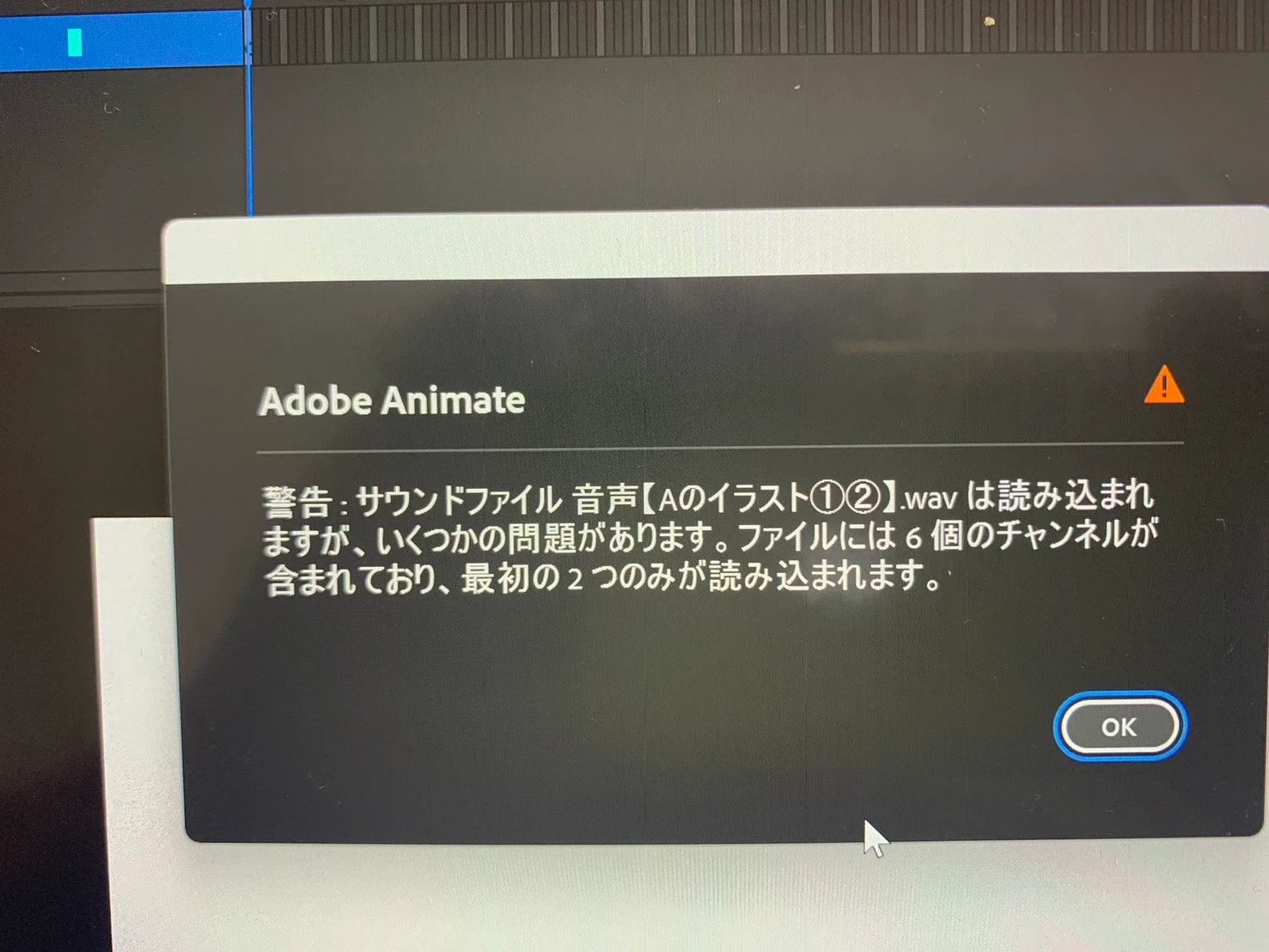 auditiondで録音した音声のファイルをanimateで開くと、写真のような警告が出てきて、読み込むことはできますが無音の状態となります。ファイルアプリから開くとしっかり音声が再生されるのですが、animateで開くと無音状態です。