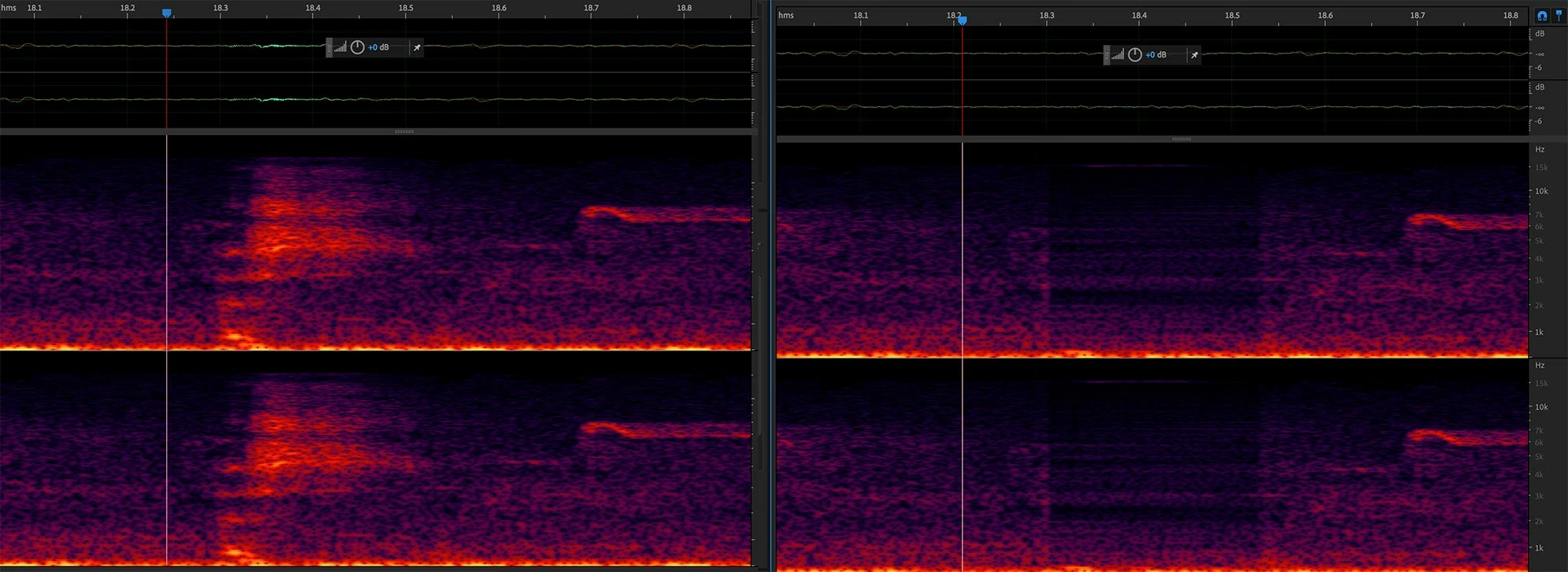 ショットガンマイクで、食事シーンを収録した音源に、鼻息が入ってしまうので、除去したいです。