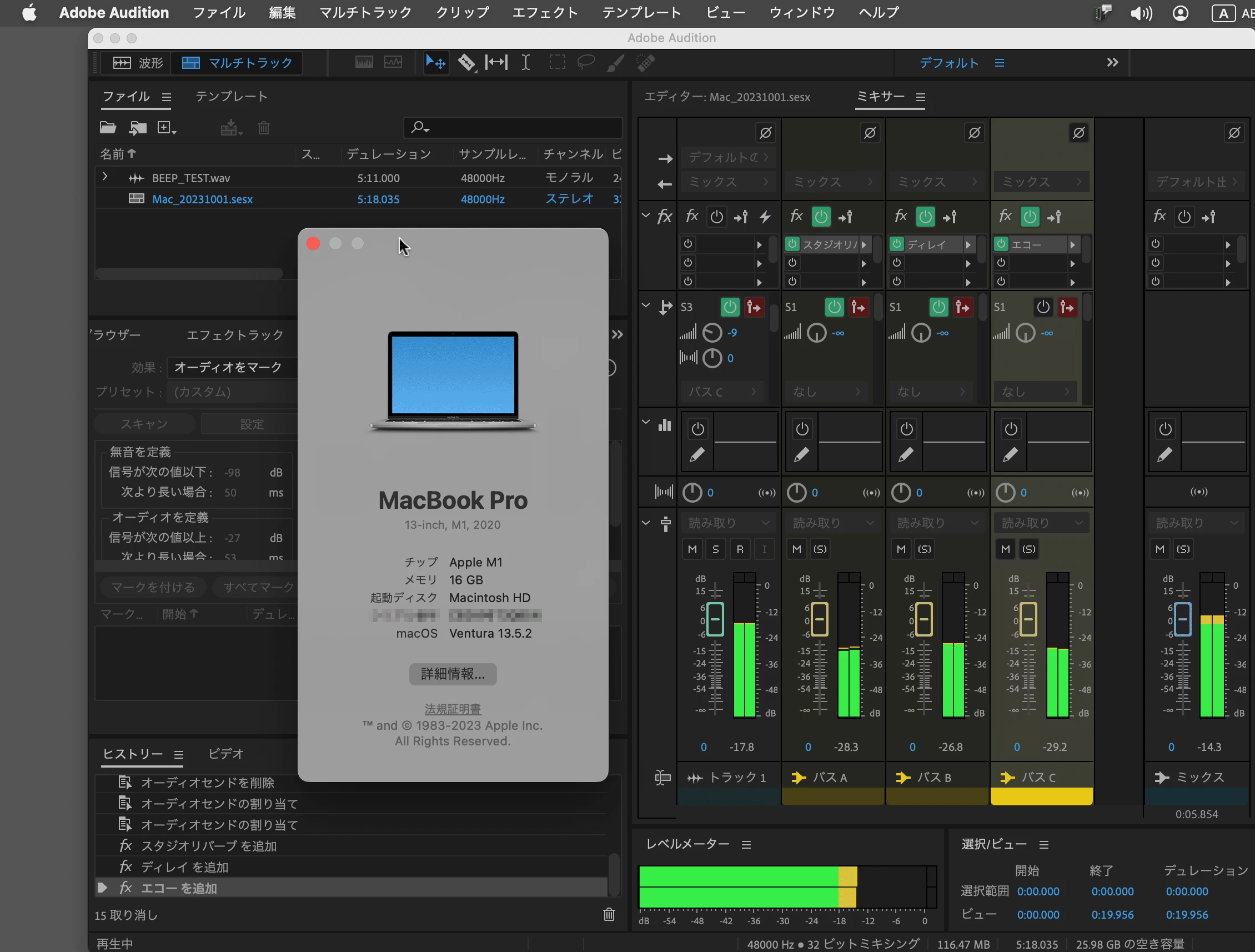 私の手元のMac(M1 MacBook Pro 2020, macOS 13.5.2, Audition v23.6.1)では、一応正常に動いているように見えます。