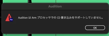 「AuditionはarmプロセッサでのCDの書き込みはサポートしていません」