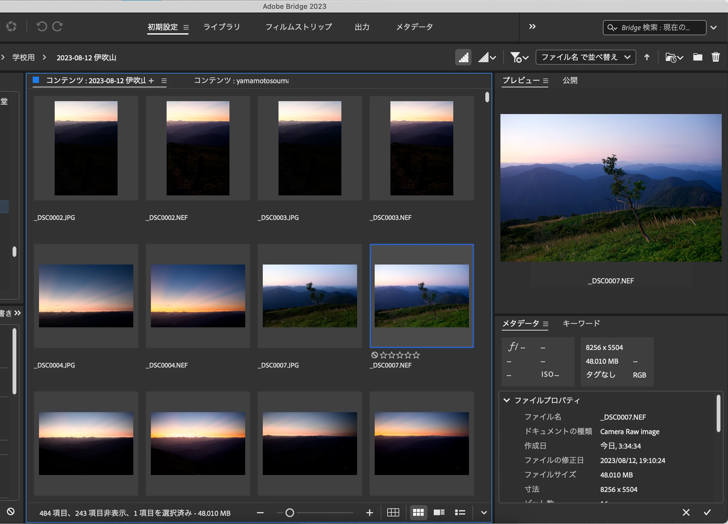 ニコンのRAWデータを扱っているのですが、データを選択してもEXIFが--のまま表示されずcameraRAWで開くがグレーのまま実行できません。画像のプレビューは撮影時のプロファイルで表示するようにしているのですが、明らかにAdobe カラーのプロファイルで表示されています。つけていたレーティングも反映されなくなりました。