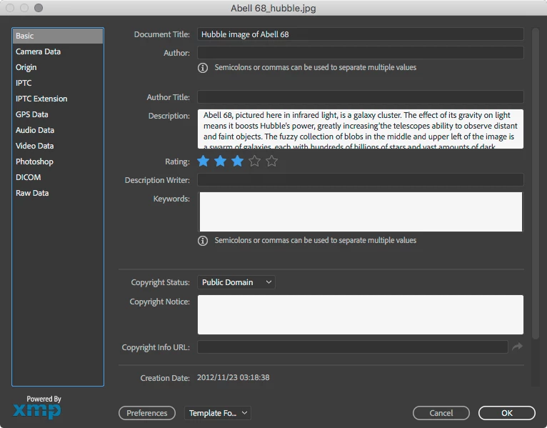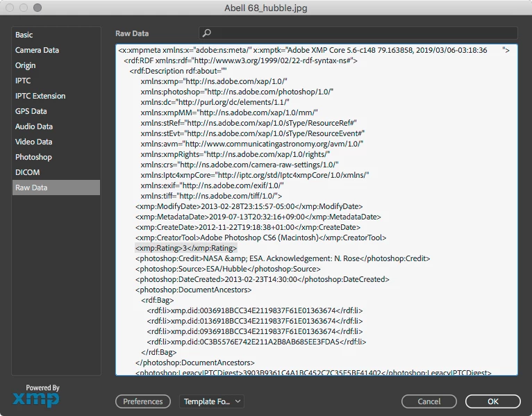 失礼、Camera Raw 環境設定で「画像設定の保存先:サイドカー ".xmp" ファイル」にしていると Raw 画像と同じフォルダにXMPファイルが保存されます。Raw 以外では画像ファイル内に直接保存されます。