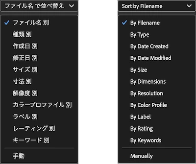 並び替えの「寸法を基準」と「サイズを基準」の意味を知りたい。