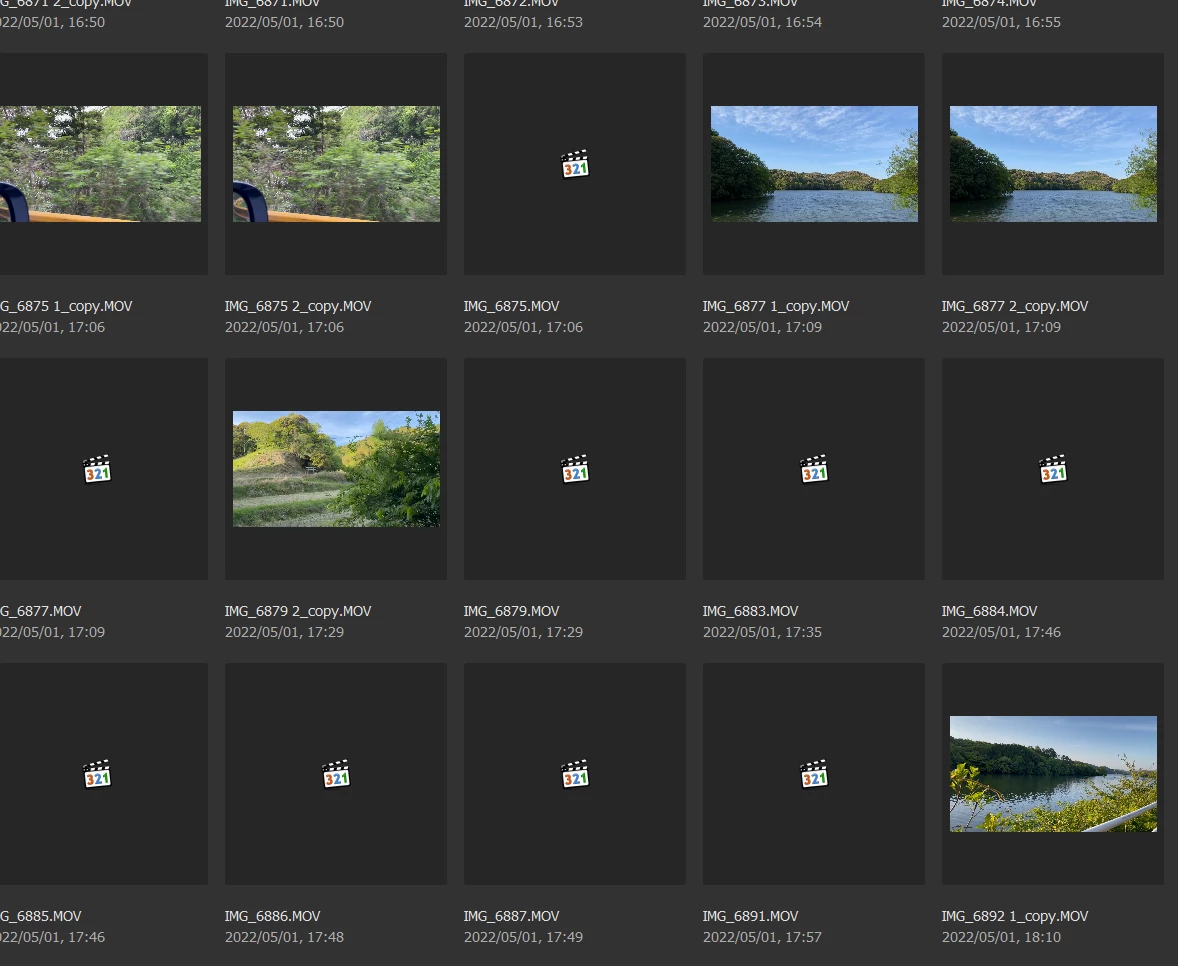 動画ファイルのサムネイルが表示されず、ファイルアイコンが表示されるものがあります。