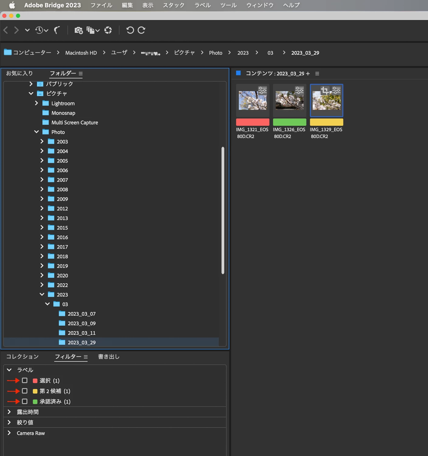 赤、黄、緑などラベルをつけてそれぞれ赤のみ、緑のみ表示させたい。大量の画像ファイルから特定の条件でラベルをつけて、赤のみ、緑のみと表示できませんか?ラベルのついた項目で表示させると赤も緑もみんな表示されます。
