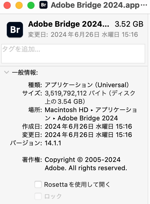 環境:MAC OS12.7.2, Bridge14.1.1