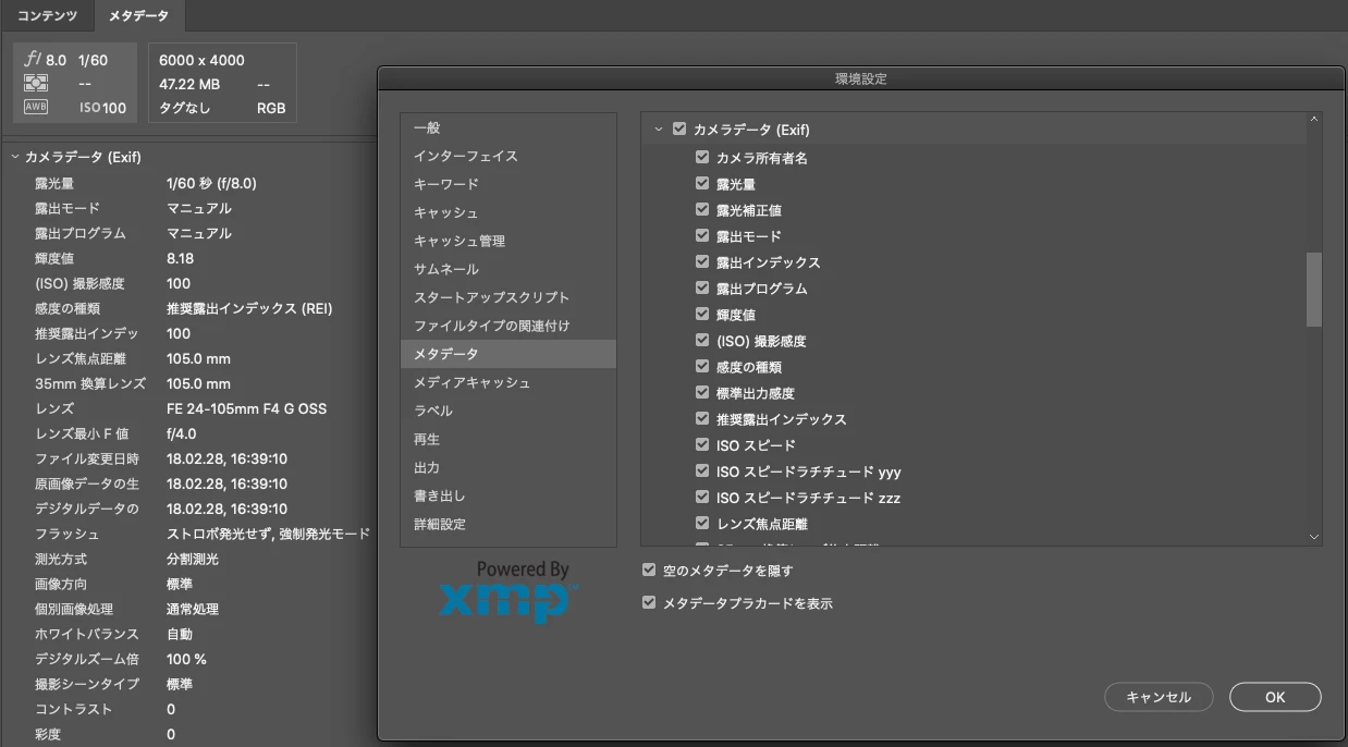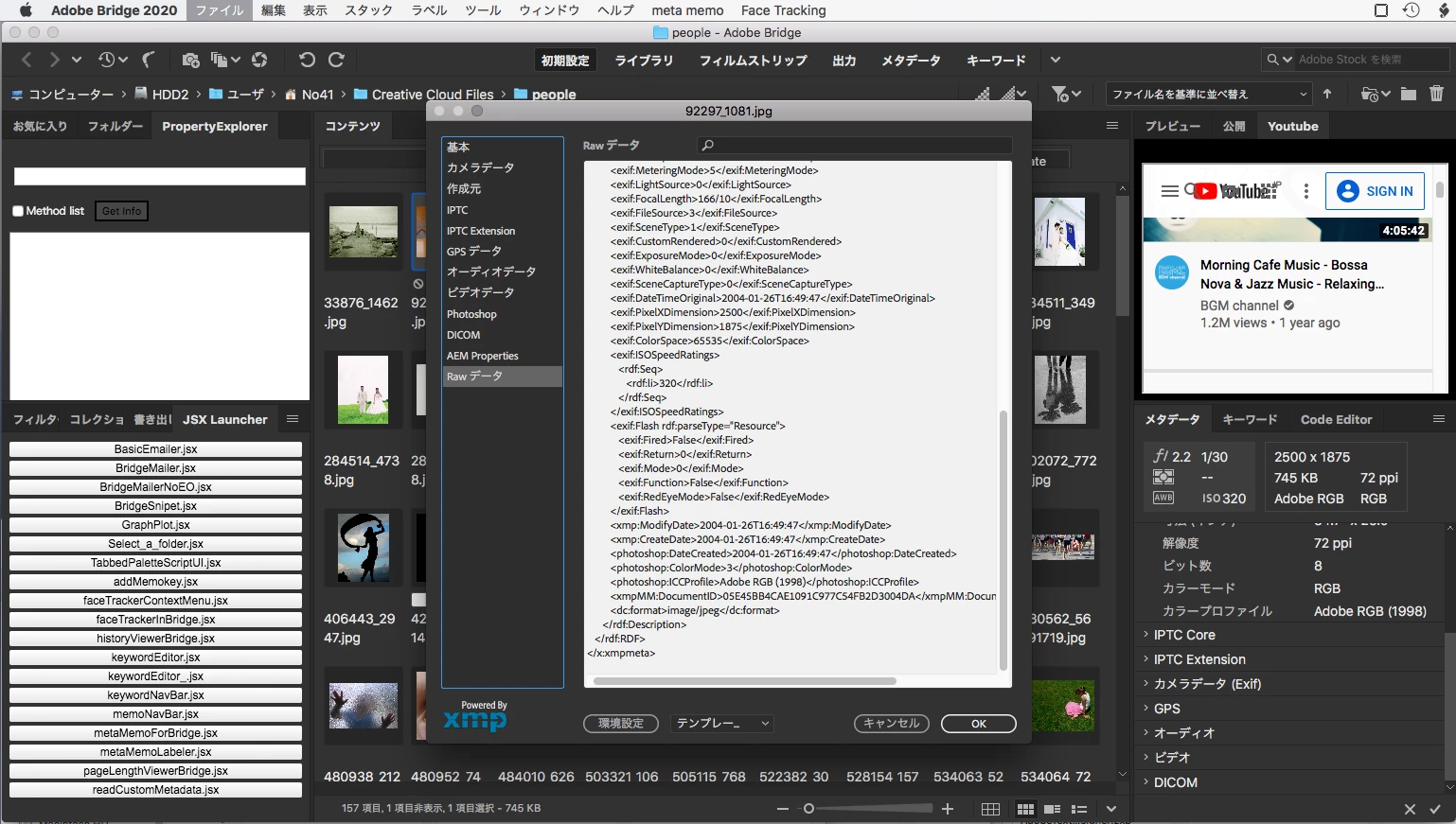 「Adobe Bridge 1919」ではExifが見れたのですが「Adobe Bridge 2020」ではExif情報がどこに表示されててるのでしようか。