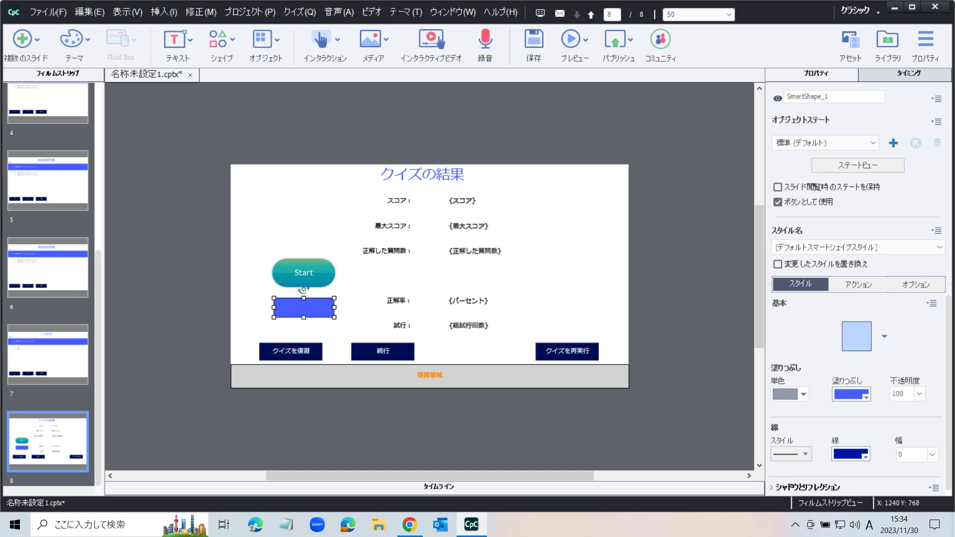 クイズ結果スライドにインタラクティブボタンを追加する方法