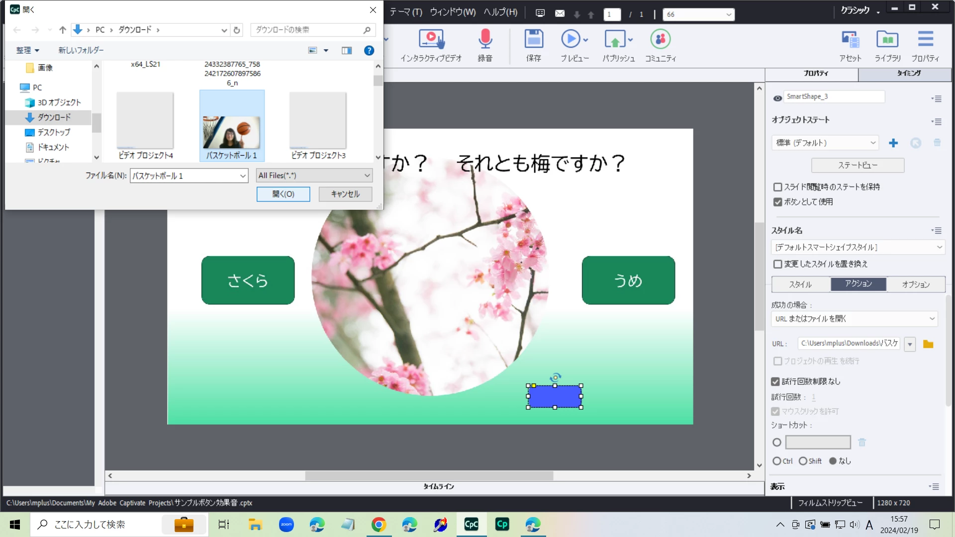 スライドに配置したボタンをクリックすると pdf や jpeg データをダウンロードできる、