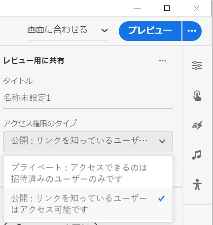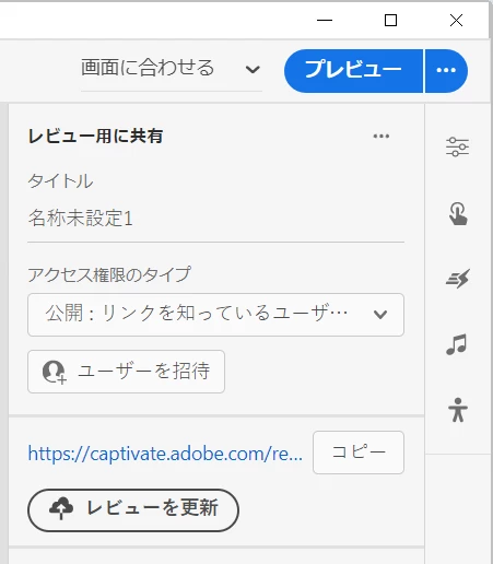 ボタンをクリックすることで共有するための操作パネルが出現します。