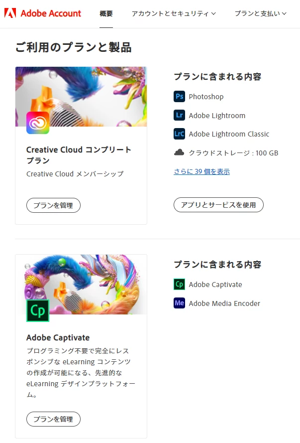 上記ページにログインしても登録済みの製品にCaptivateが表示されません。