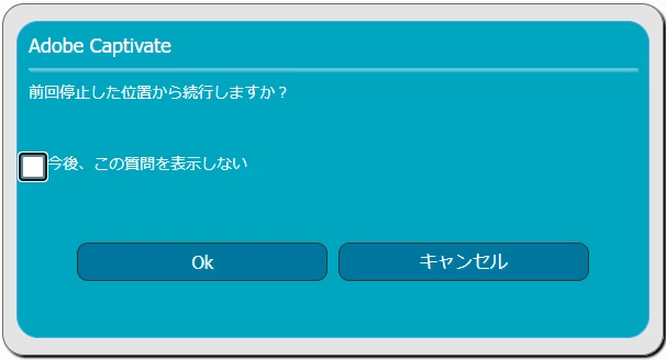 また、やや本題からはずれるかもしれませんが、LMS上でコンテンツを中断すると、再開時に必ず以下の画像が表示されます。