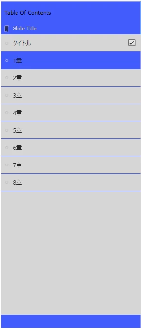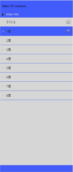 範囲内のスライドを全て閲覧した時点で、目次のタイトルに✓が付くようにする方法を教えてください。