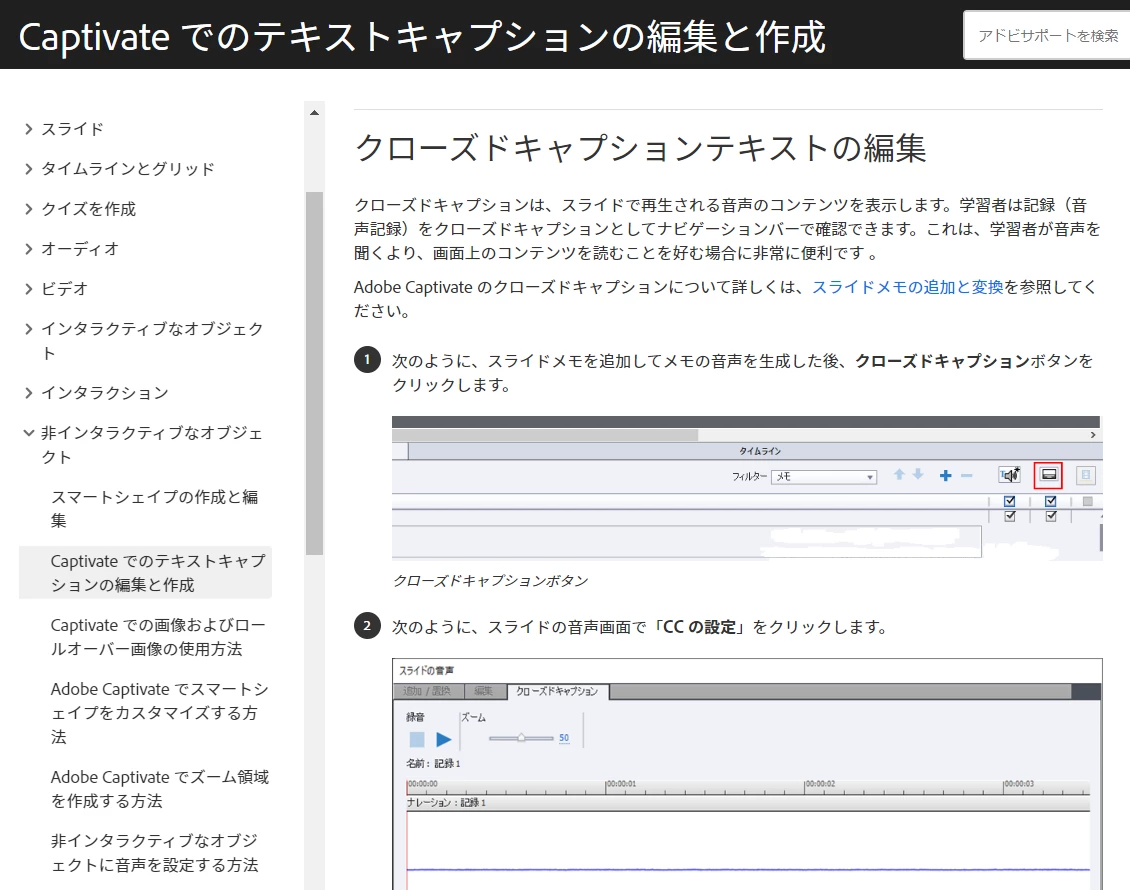 クローズドキャプションとしてAdobeのサイトでも解説が掲載されています。