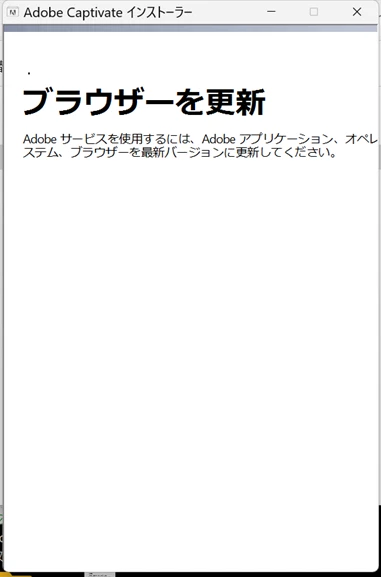 Adobe Captivate Classic(11.5.5 アップデート)のインストールで「ブラウザーを更新」のメッセージ