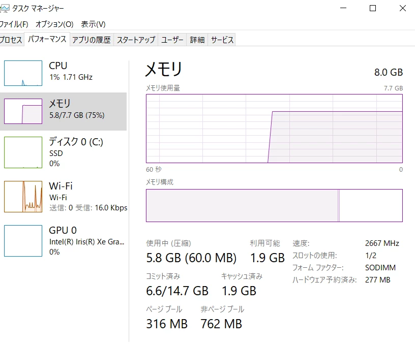 (タスクマネジャーで確認し、出来るだけ不要なものを閉じておきます)