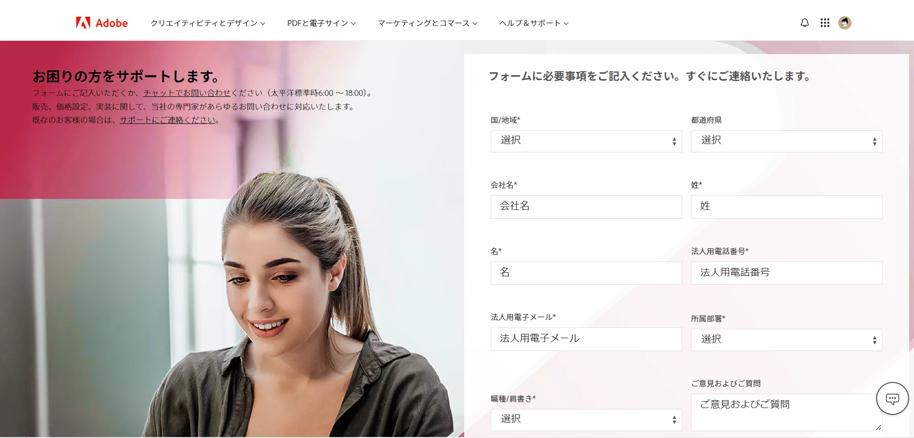 そして表示される画像左側のリンクをご利用いただき、担当者に問合せ、チャットで相談を行うことも可能です。