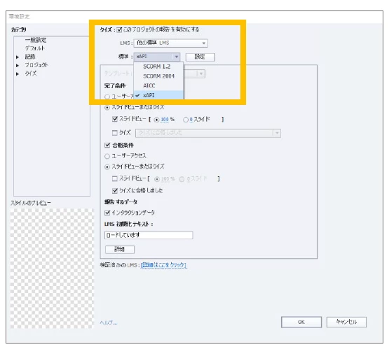 ※画像ではxAPIを選択していますが、Scorm2004をお選びください。