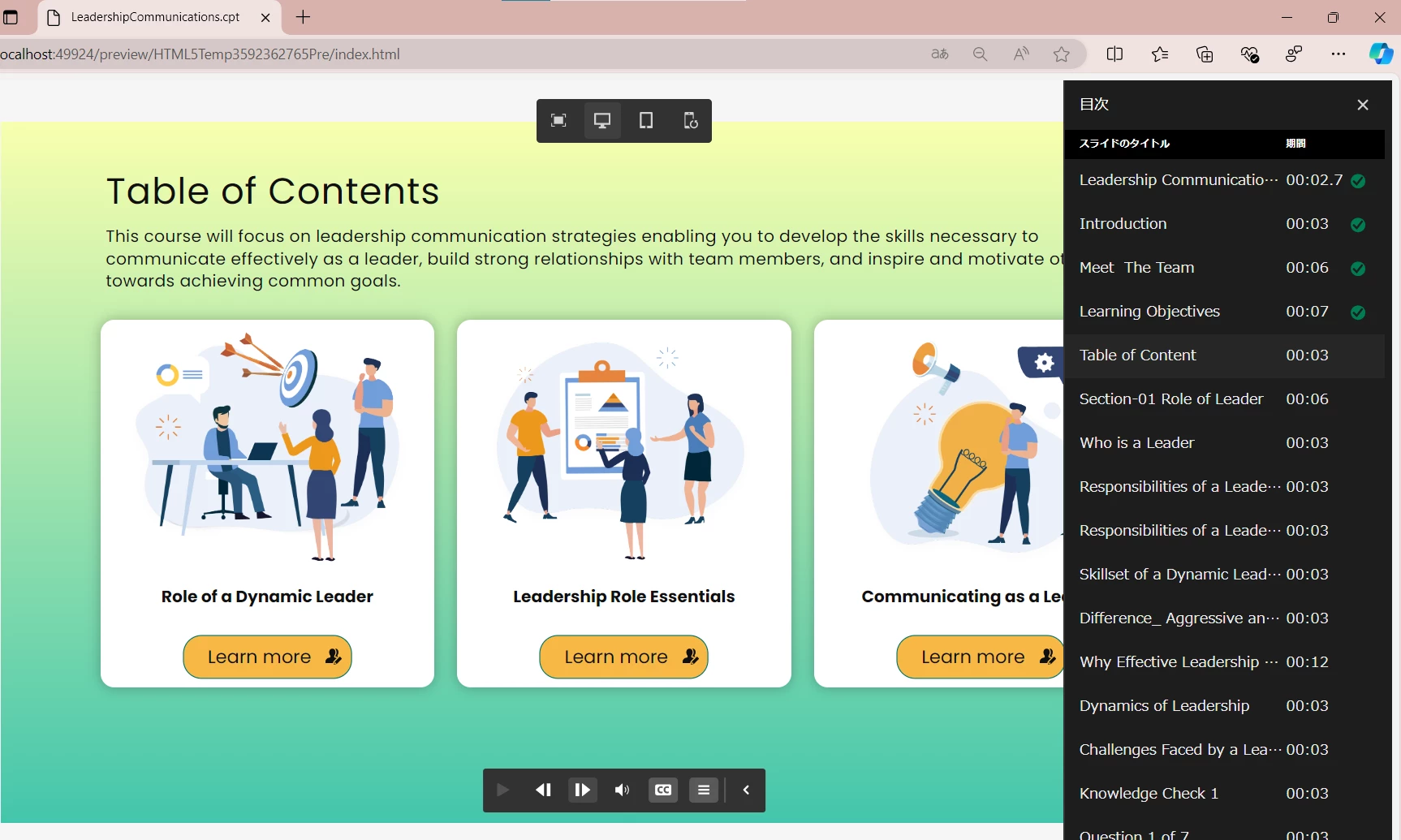 目次を設定するなど、途中経過がLMSに送信されるようにするために何か設定方法はありますでしょうか?