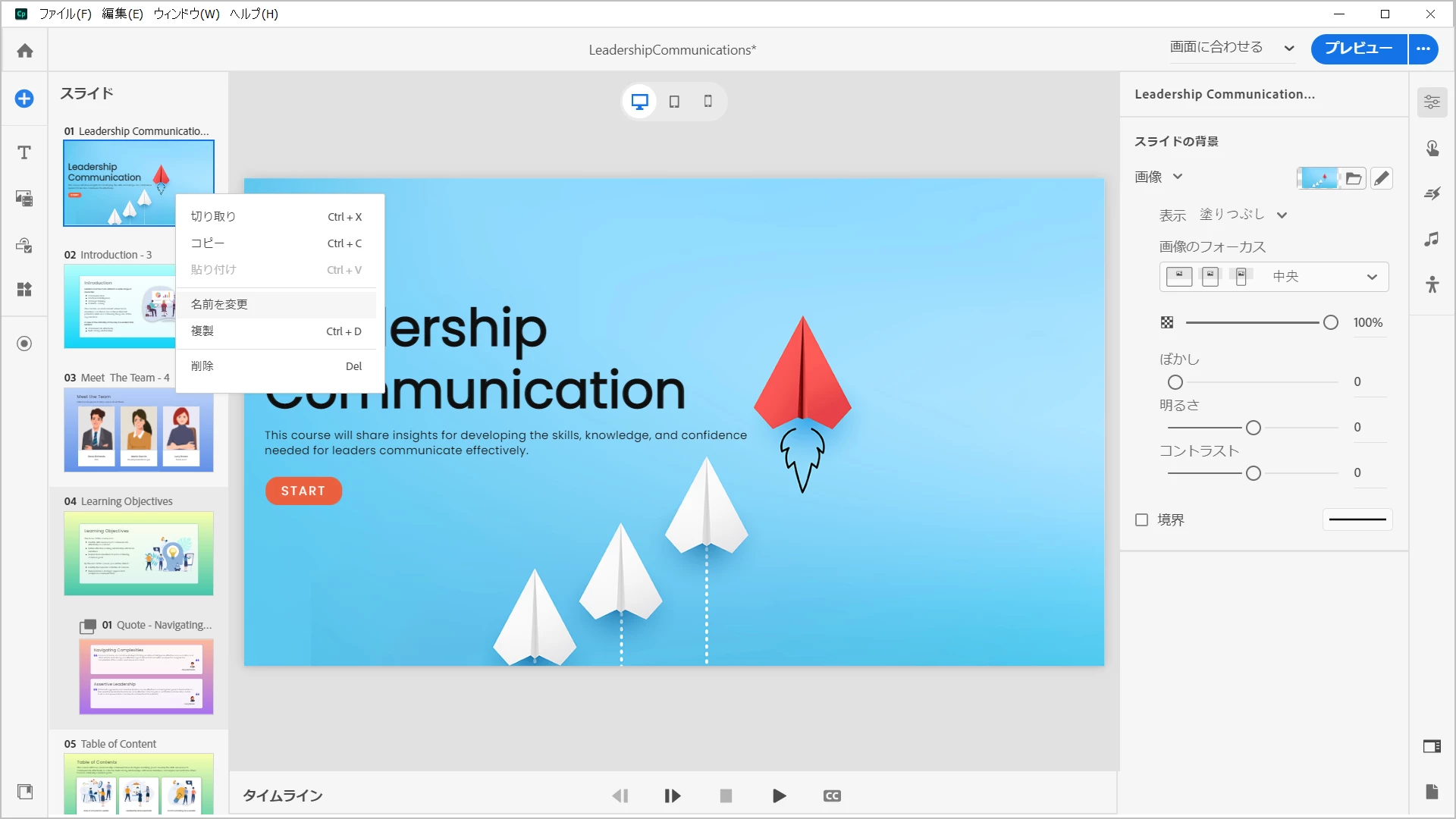 1 Adobe が提供しているサンプルを開きます。(リーダーシップコミュニケーション)