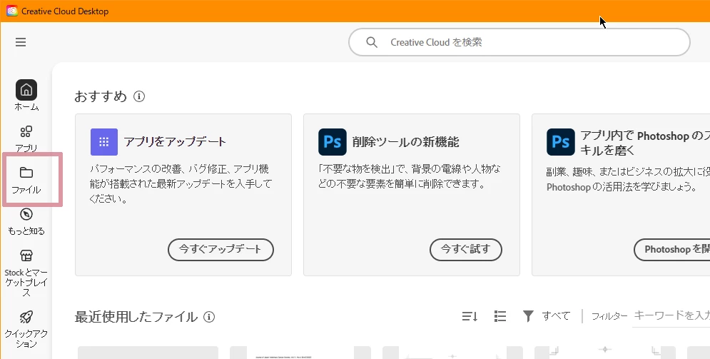 場合によっては,CreativeCloudデスクトップアプリの「ファイル」を利用するのもありだと思います。