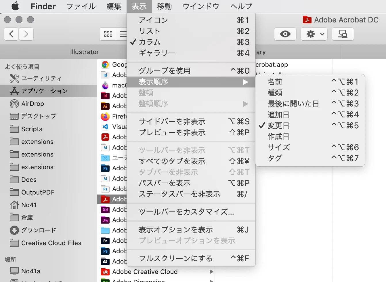 CCとか関係なくて、macOSのFinderの設定ですね。表示順序を変えてください。