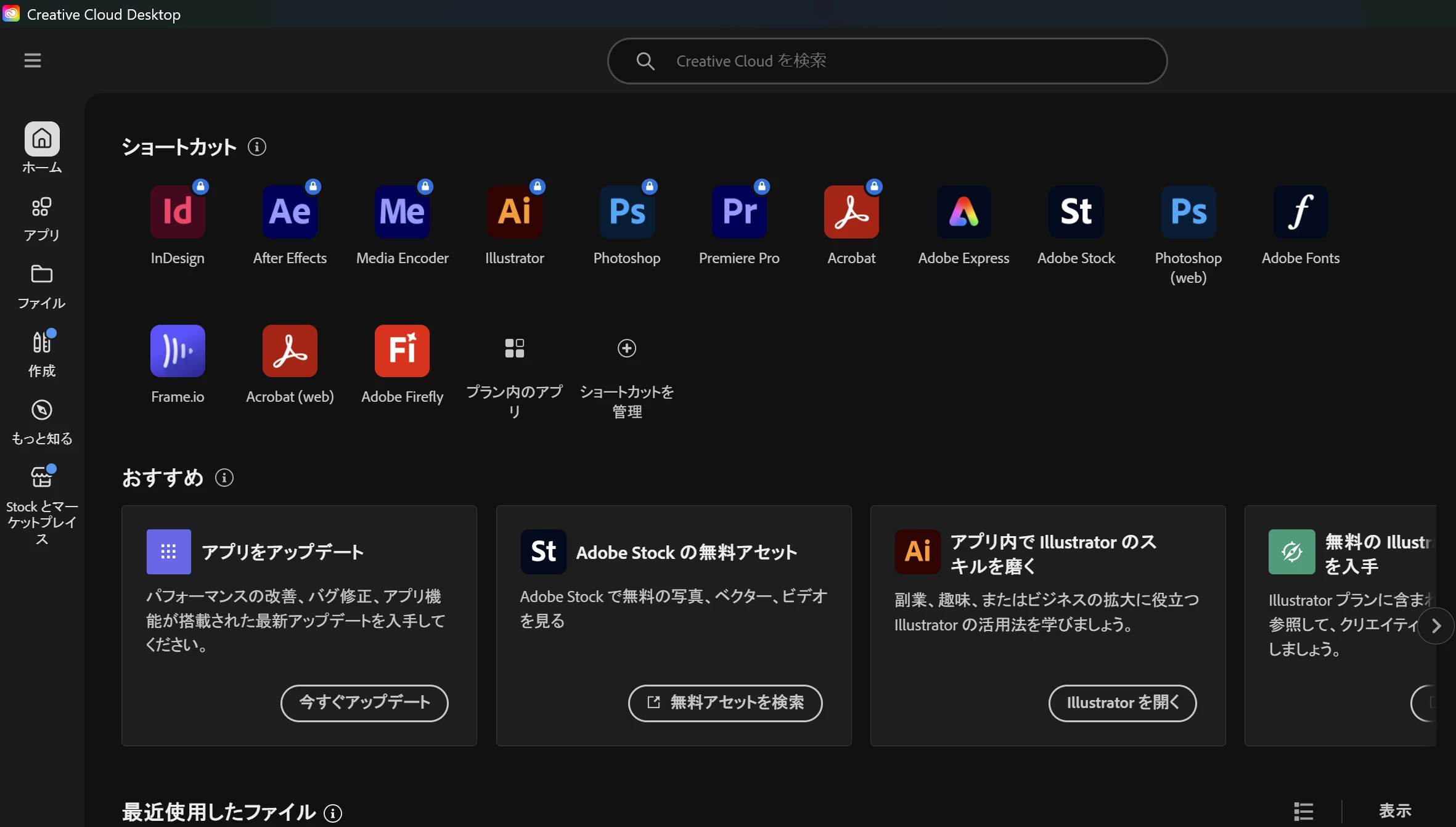 Creative Cloudのコンプリートプランを利用しているのですが、アドビアカウントページの「ご利用のプラン」に含まれているものと「アカウントに含まれるもの」が全く違っていています。「アカウントに含まれるもの」を確認するとデスクトップアプリがひとつもありませんでした。