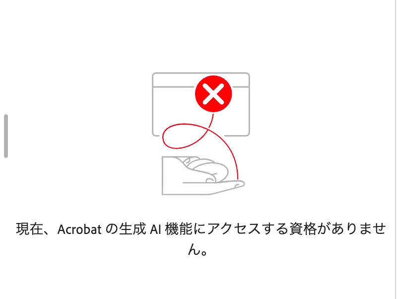 隆隆司細4117693ParticipantForum|Forum|5 months agoOctober 20, 2025질문Acrobat 生成AIについてForum|Forum|5 months agoOctober 20, 20251 답변69 조회現在、Acrobatの生成AI機能にアクセスする資格が画ありません。という表示がが現れ使用できません。解決方法を教えてくださいませんか?共同作業