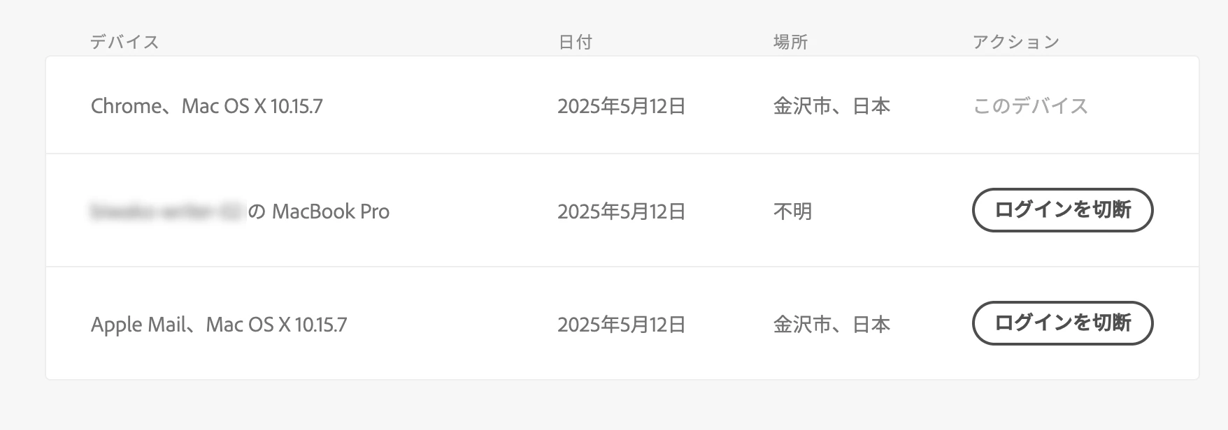一月ほど前から、AdobeCCが複数で使われているとアラートがでて、パスワードを変更したのでが状況がかわらず同じです。