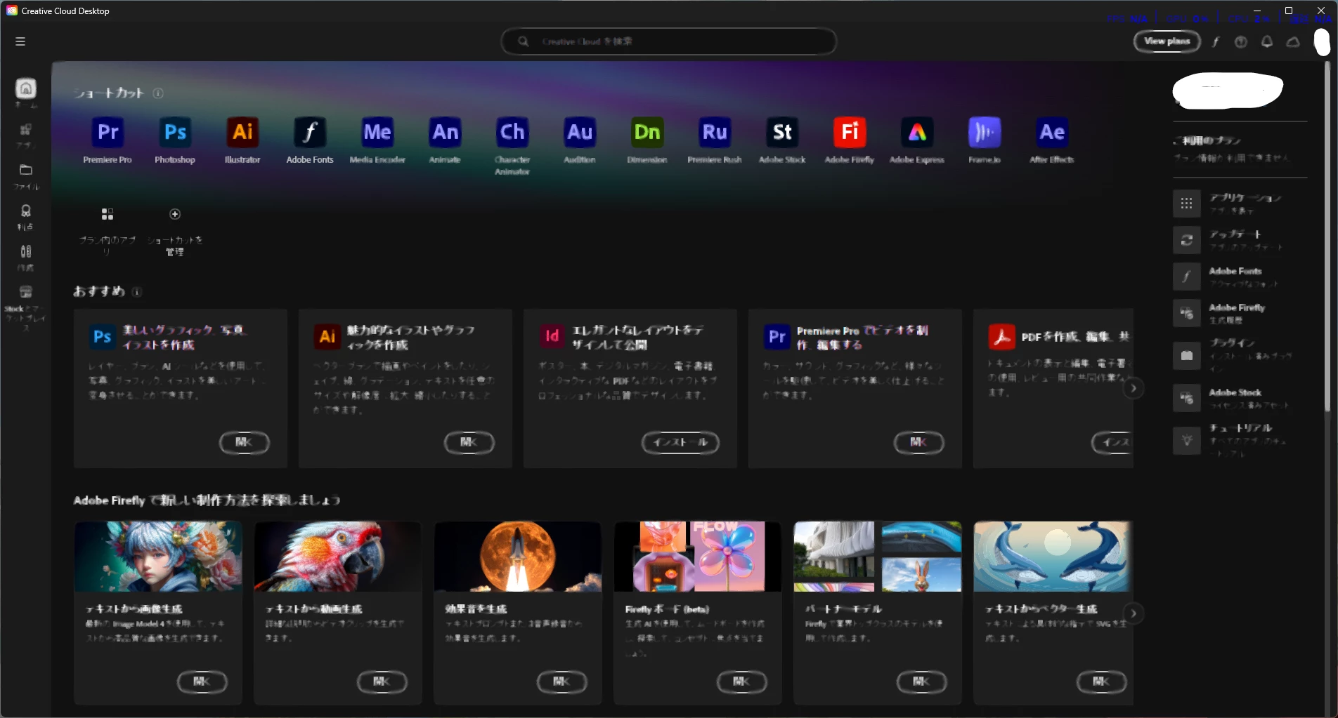 EEnergetic_Dazzle4947ParticipantForum|Forum|6 months agoSeptember 23, 2025QuestionCreative Cloud デスクトップアプリ内の表示などがぼやけるForum|Forum|6 months agoSeptember 23, 20251 reply203 viewsWindows 11 環境で Creative Cloud デスクトップアプリの画面がぼやけて表示されます。Premiere Pro や Photoshop など本体アプリは正常で、ブラウザ版 Creative Cloud も問題ありません。高DPI設定の変更、NVIDIA設定、アンインストーラーを使ってから再インストールなどを試しましたが改善しませんでした。解決策はありませんか?新規#一般へメッセージを送信クラウドストレージ Web アセット共同作業