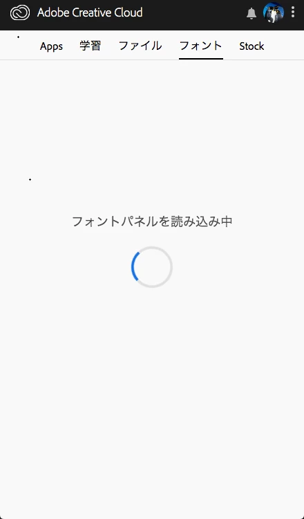 Creative Cloud デスクトップアプリケーション(以下、CCDA)を起動し、〔ファイル〕タブ・〔フォント〕タブを開くと、読み込み中のまま先へ進みません。