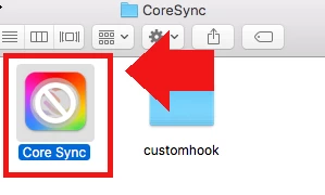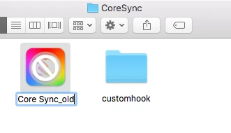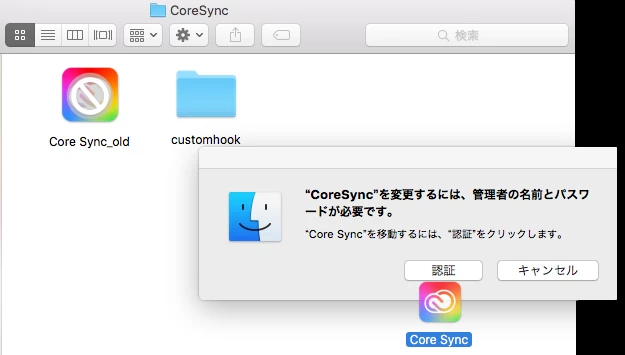 - 〔Core Sync〕フォルダの中にある〔ACCFinderBundleLoader〕というファイルを削除するか、名前を変更します。