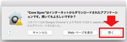 このCoreSyncの最新バージョンは、macOS10.12以上の対応となります。