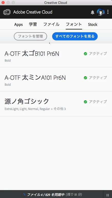 またこれにより、ファイル・フォントの同期ができなくなってしまいます。