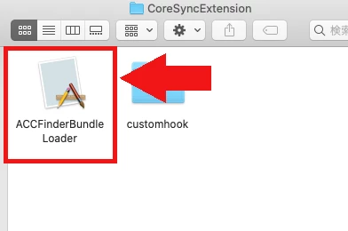 - ファイルを開くと、〔ACCFinderBundleLoader〕〔Core Sync〕という2つのファイルがあることを確認します。