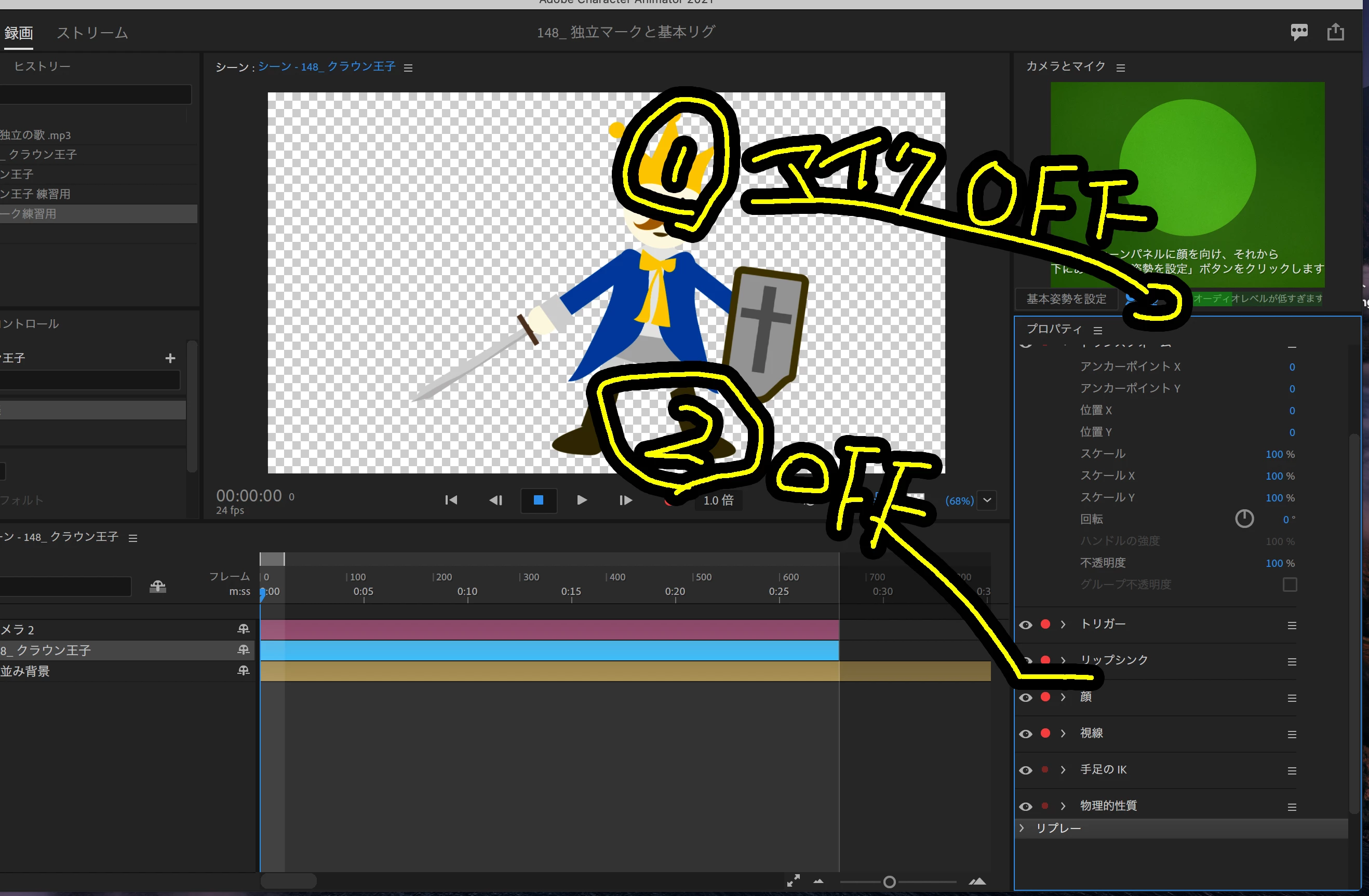 2)リップシンクのビヘイビアがOFF