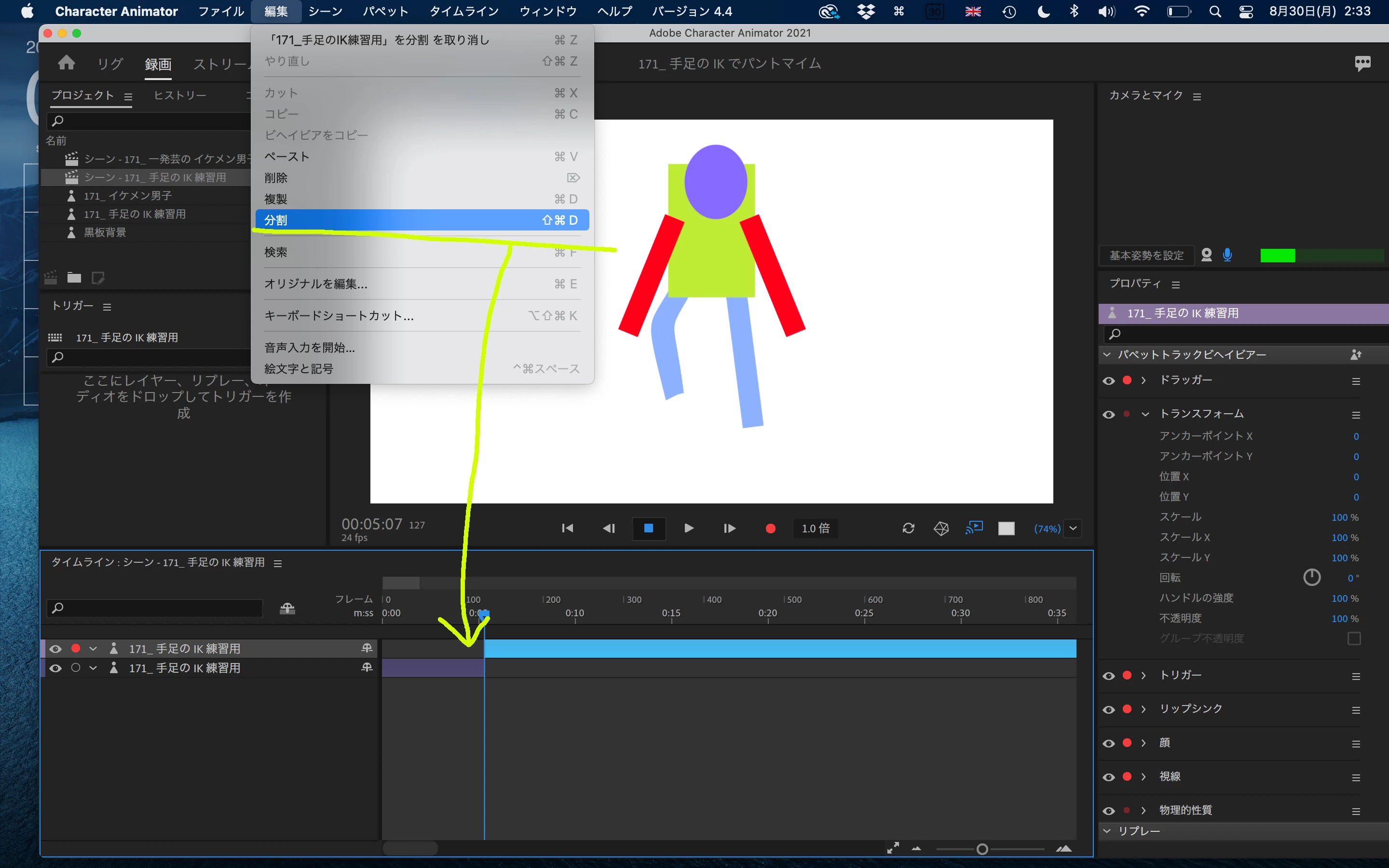 編集→分割