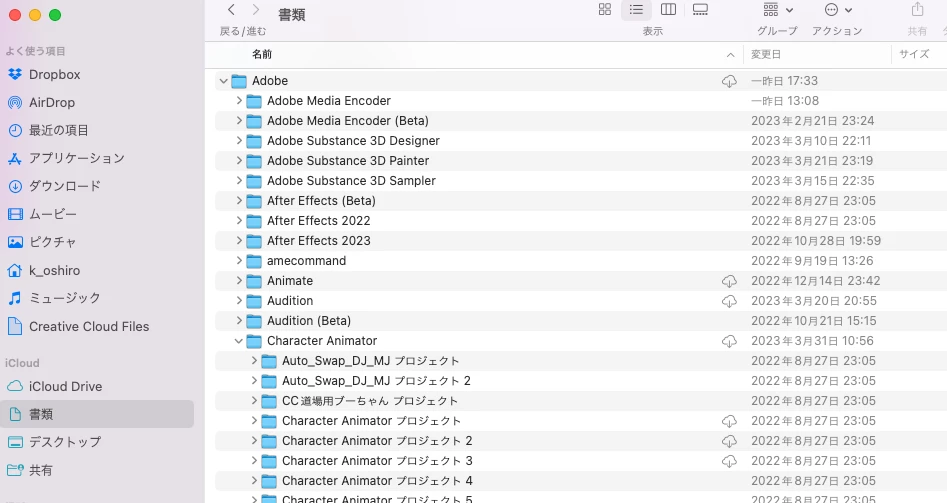 フォルダーの中、CharacterAnimatorのフォルダーがあり、その中にCharacterAnimatorプロジェクトとして過去のプロジェクトが保存されます。まずは、そちらをお探しいただけますか?