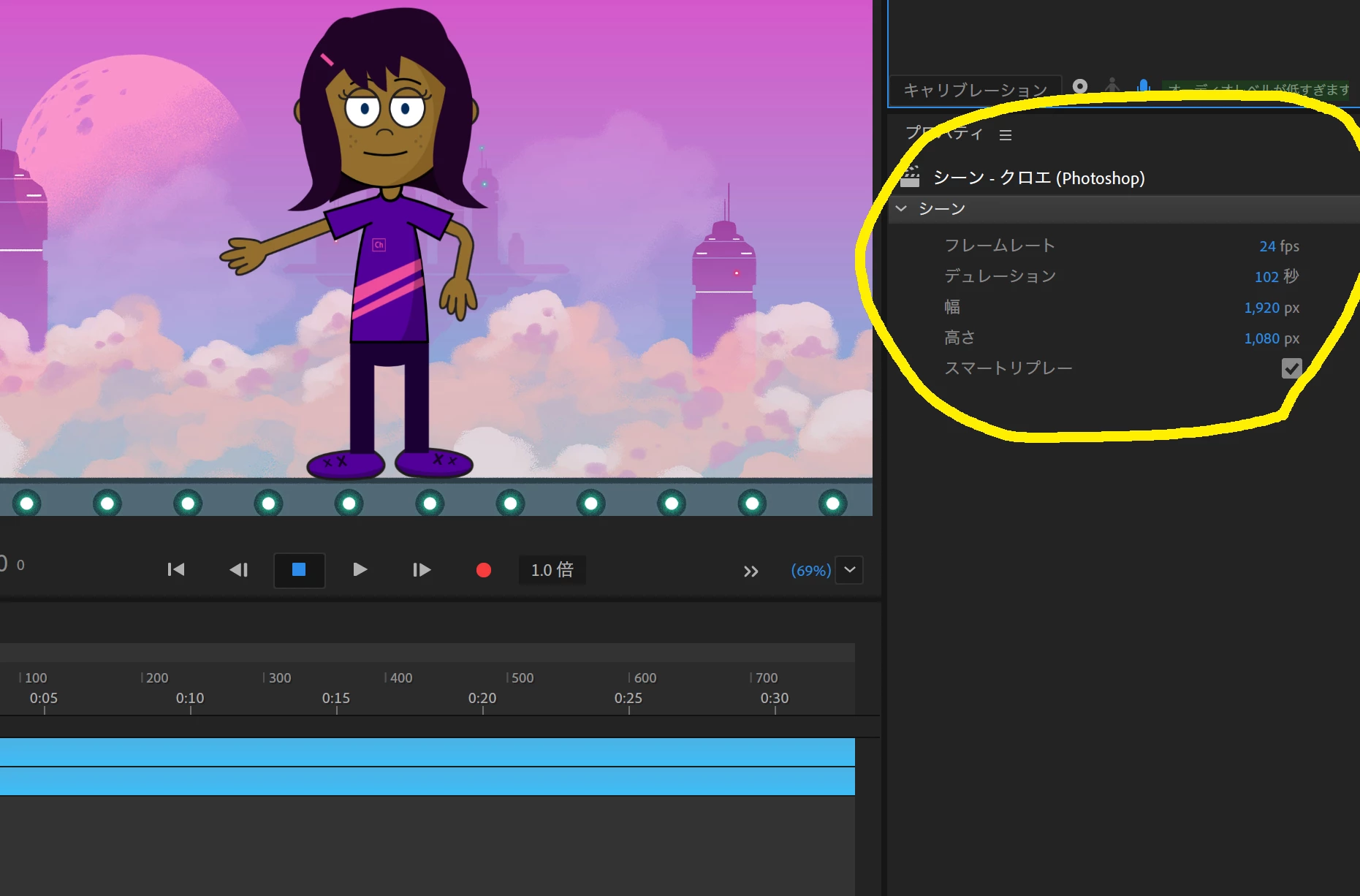 Character AnimatorからPremireproへのシーンの読み込みサイズ表示のずれ