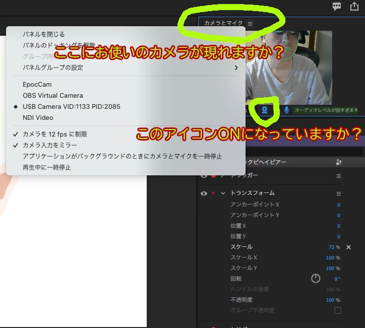 webカメラが認識されない