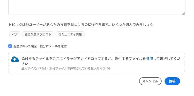 投稿画面の添付ファイルエリアが非常に目立つのでついここにpng等をドラッグ&ドロップしてしまうのだと思いますが、入力欄にドラッグ&ドロップでインライン表示させられることを分かりやすく表示するか、ファイル添付でも表示可能なもの、pngやjpegは本文の直後にインラインで表示されるようにできませんか。